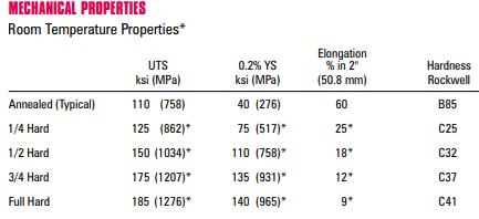 Grade 301 Full Hard Stainless-Steel Properties