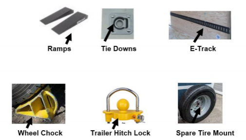 Tie Down hold the tie down straps to fasten the cargo trailer accessories |