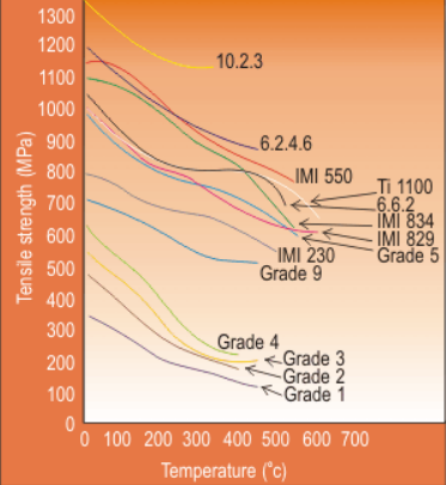 Figure: Tensile stress of different titanium graph at elevated temperature