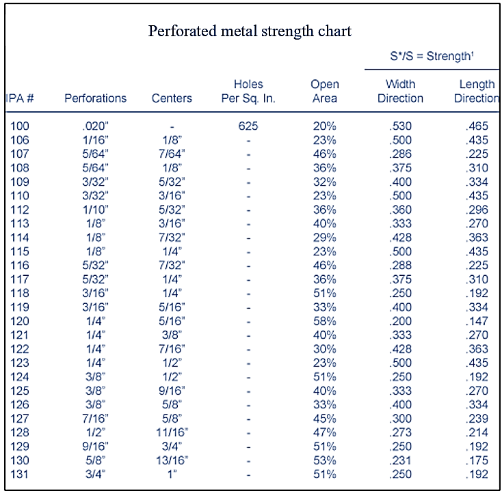 Perforated sheet is also a type of expanded metal. Given below is a perforated metal strength chart.