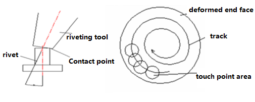 The pendulum rolling riveting method is easier to understand. The riveting head only swings and rolls along the circumferential direction. The radial riveting method is more complicated. Its trajectory of the riveting head is plum-shaped, and the riveting head passes through the center point of the rivet every time, that is, the riveting head not only moves in the circumferential direction, but also swings and rolls along the radial direction.