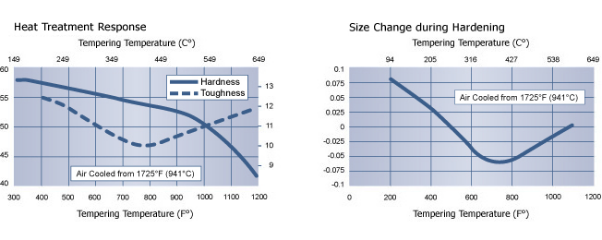 Its composition provides a unique combination of properties. Carbon provides hardness and strength. Chromium adds corrosion resistance. Molybdenum improves toughness and vanadium improves wear resistance and hardenability. Silicon and manganese also improve hardenability and strength.