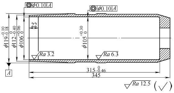 This part is processed with thick-walled pipe material 35CrMnSiA. If the structure of the part is not suitable for processing with thick-walled pipe material, to avoid material waste, and the parts do not need to withstand high overload, the thin-walled pipe material can be used to close the process, and the outer diameter of the pipe head is partially Forming, inner diameter shrinkage, to meet the blank size requirements; if the part needs to withstand a certain high overload, and its comprehensive mechanical properties have corresponding requirements, the die forging can be considered to form the blank under the premise of saving costs, but it must be based on product design requirements. Corresponding blank production technical requirements.