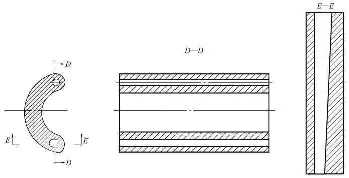 Put the finished workpiece into the semi-open fixture, the inner hole diameter of the fixture is basically the same as the outer diameter of the workpiece, the conical surface of the locking screw and the inclined surface of the gland are in contact with each other, tighten the screw, compress the workpiece, turn The size of the tightening force should not be too tight. Adjust according to the wall thickness and strength of the thin-walled workpiece and the size of the cutting force, and finish machining the inner hole. The cutting parameters are: cutting speed vc=150~180m/min, feed amount f=0.1~0.15mm/r, and back-cut amount ap=0.1~0.2mm.