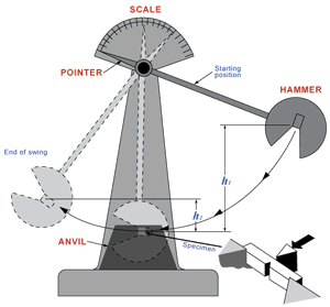 Specimen is held in a pendulum-testing machine to measure toughness by Charpy or Izod test. Specimen is broken by an overload event through impact by pendulum. Then the record is measured how far the pendulum swings back up after fracturing the sample.