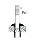 Load have application on tail side to pull it toward head until the tension mandrel becomes break after deforming tail. All the operation have working area from one side without need of any second man. Figure.No.4 describes Pull Mandrel Rivet.
