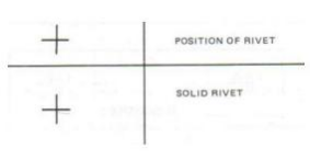 Symbols are the representation of it on engineering drawing and can describe Types of rivets, Joint detail of sheet metal and Size of hole. Figure. No. 12 describes the symbol representation of Rivets on engineering drawing:
