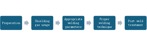 409 grades can also be welded via MIG welding technique keeping in mind the protocols and necessary measures to be taken for accurate welding. Following steps are involved in MIG welding: