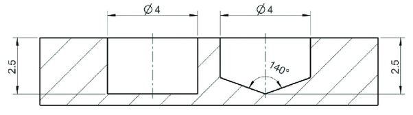 Blind hole with a flat bottom (HFB, left) and with conical bottom
