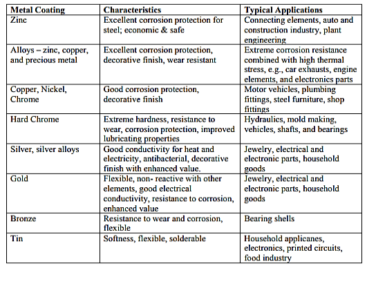 There is a set of metals that cannot be easily electroplated, only coated by special methods. Chromium, Aluminum, titan, stainless steel, tin, and refractory materials like tungsten have stable oxide layers providing excellent corrosion protection making them difficult to electroplating. Chromium can have gold metallic plated color in electroplating by a special gold electrolyte.