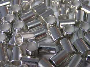 Nickel silver white plated color hard metal with bright luster. It has very high wear endurance and can't be built on edges. Nickel can give a uniform plated finish to blind holes and cavities. High corrosion protection due to a high percentage of phosphorous. The metallic nickel finish is smooth and uniform and is used as a barrier to attack base metal by electrolyte metals like silver, copper, and cyanide.