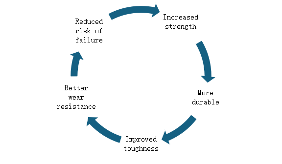 Increases surface hardness, wear resistance, and fatigue strength. |