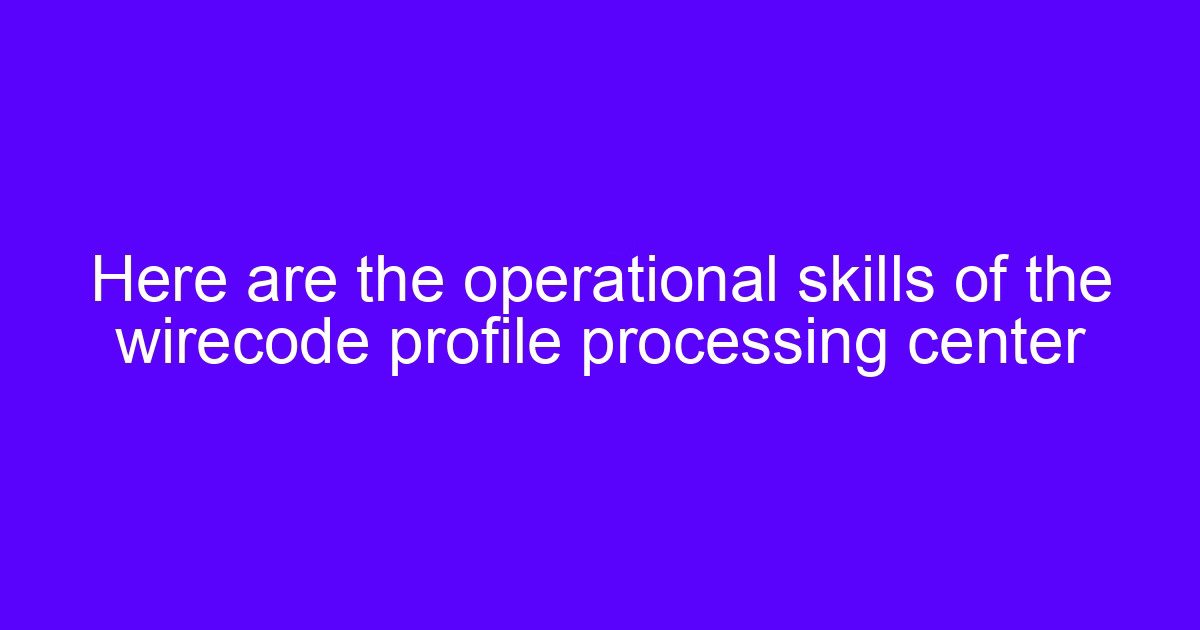 Here are the operational skills of the wirecode profile processing center