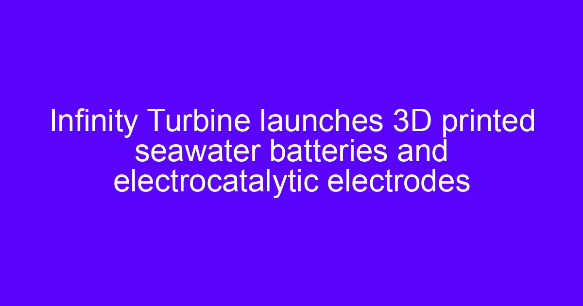 Infinity Turbine launches 3D printed seawater batteries and electrocatalytic electrodes