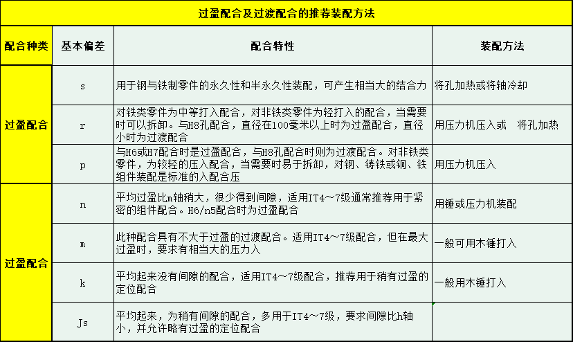 Interference fittings depend on the amount of interference after the associated parts are assembled to achieve a tight connection. After assembly. Due to the elastic deformation of the material, pressure is generated between the contact surfaces. Therefore, there is considerable friction force between the contact surfaces to transmit torsional or axial force during operation. The interference fit assembly is generally a fixed, non-detachable connection. Interference fit assembly methods include: (1) hand hammering method, (2) press pressing method (3) cold fitting method, (4) hot fitting method;