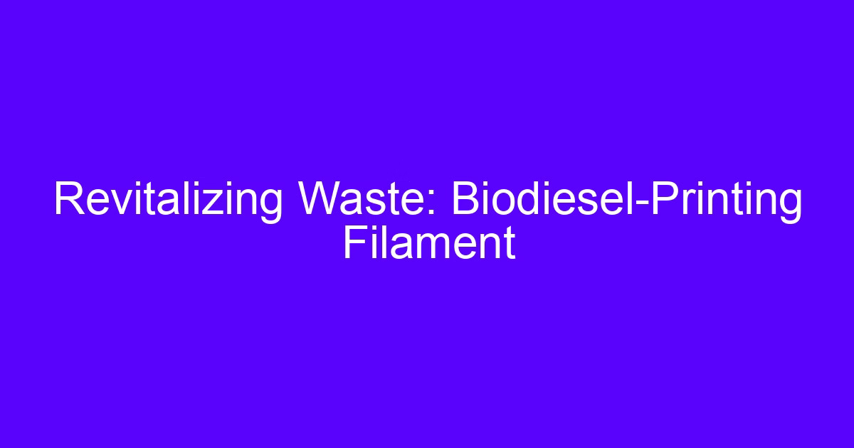 In a groundbreaking development, a new type of 3D printing filament has been created using biodiesel waste. This innovative material has the potential to revolutionize the 3D printing industry, offering a sustainable and eco-friendly alternative to traditional filaments. In this article, we’ll delve into the world of 3D printing and explore the benefits of this new filament, as well as the process of creating it.