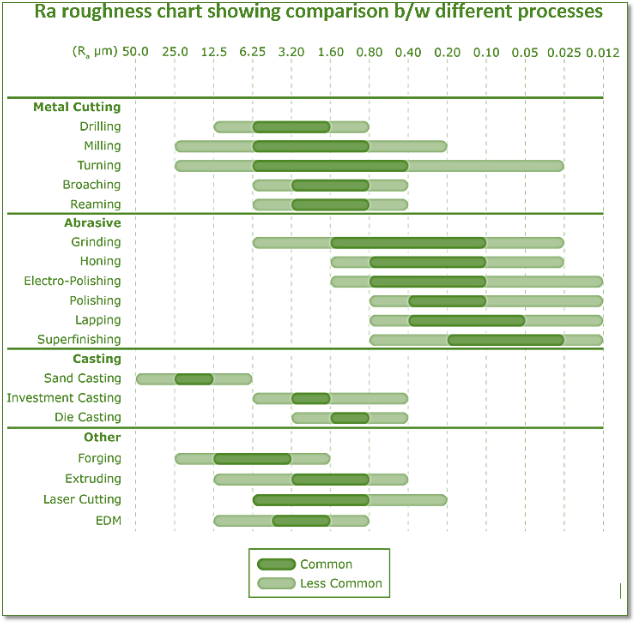 Procesy obróbki skrawaniem, takie jak szlifowanie, frezowanie, toczenie czy wiercenie, powodują różną chropowatość powierzchni danego materiału po obróbce. Wykres chropowatości powierzchni maszyny pozwala porównać średnią chropowatość powierzchni uzyskiwaną w każdym procesie obróbki. Pomoże to w wyborze procesu zapewniającego pożądaną chropowatość.