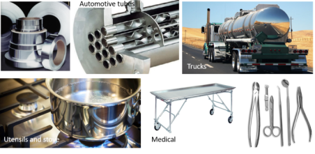 Stainless steel is a utilized in numerous applications such as automotive, aerospace, marine, medical and food processing and home decor. In home decor outside furnishing, door knobs and railings.