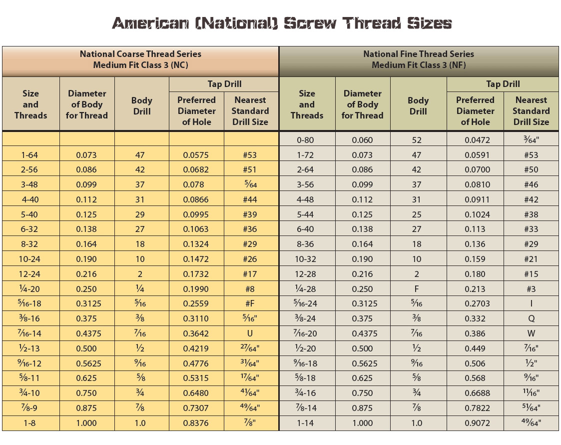 Drill and tap size chart