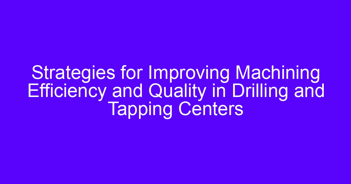 Strategies for Improving Machining Efficiency and Quality in Drilling and Tapping Centers