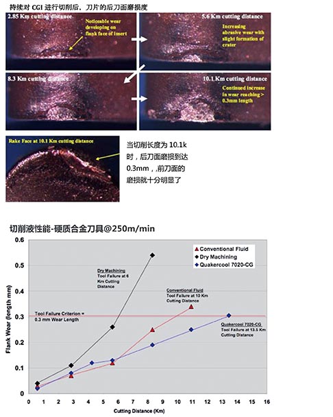 Recent tests have demonstrated the significant improvement in tool wear rates achieved through the use of advanced metal treatment fluids, specifically designed for CGI. Quaker Chemical’s Quakercool 7020 CG, for example, has shown remarkable results in reducing tool wear rates by up to 90% when machining CGI.